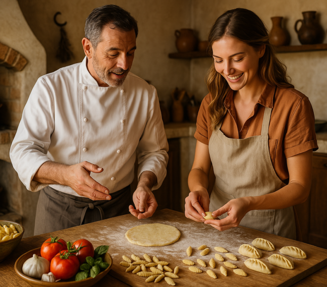 Perfetta per amanti della cucina, coppie che cercano un’esperienza unica, e famiglie che desiderano condividere un momento autentico e gustoso.