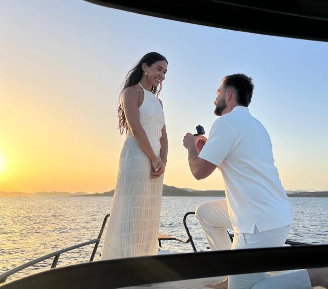 La nostra Proposta di matrimonio a bordo trasforma una semplice dichiarazione d’amore in un ricordo indimenticabile, incorniciato dalla magia della costa sarda e dalla luce dorata del tramonto.
